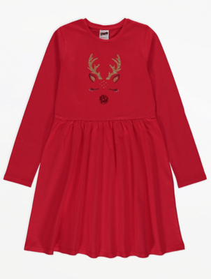 Red Reindeer Christmas Dress Kids George At Asda